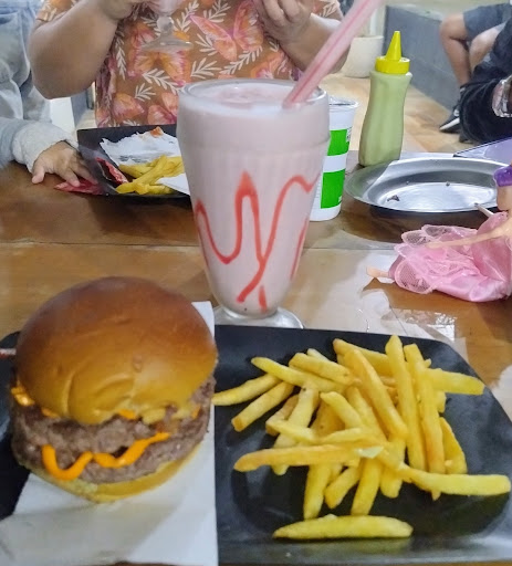 Ambiente familiar,um bom atendimento, o hambúrguer maravilhoso! Comi as partes separadas pra saber o gosto de cada uma e depois dei um mordidão 😂😋que delícia! A batata frita sequinha e um morango ao leite (quase um milk shake)muito gostoso. Tudo no ponto certo. E a carne ainda é artesanal. Com certeza voltarei pra comer os outros (comi um...
