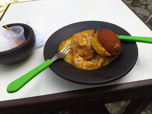 What a beautiful experience! Omolokum is a restaurant and a cultural centre at the same time. A place where you can feed your soul learning about brazilian culture and your belly eating delicious homemade food. We didn't have a reservation but Bruno and his wife welcomed us in such a lovely and heartfelt way. They are incredible hosts. We had a delicious fish stew served with farofa and rice. The caipirinha were spot on with a special spicy touch. They shared so much with us and we learnt a great deal about Candomblé. The area is Gamboa and it's far from any subway station so just go by uber (which works really well in Rio...