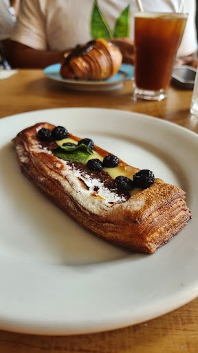 Read moreLugar bom pra tomar café da manhã, próximo ao shopping Rio Sul, em frente à Sede do Botafogo. Fomos num domingo com amigos e nos sentimos tão em casa que ficamos da abertura ao fechamento do espaço (aos domingos funciona de 09h às 13h). Comi croissant com queijo, ovos mexidos e danish de blueberries. E bebi duas sodas. Tudo estava maravilhoso. O local não é muito grande e bate sol em parte das mesas pela manhã; logo, esteja preparado para esperar um pouco e/ou pegar um solzinho comendo. O cardápio é visual, no melhor estilo "olhei, gostei, pedi, comi". E bebidas e adicionais ficam nas paredes. Os atendentes são bem solícitos e esclarecem bem as dúvidas. No nosso dia houve pequenos erros na conta, mas nada que desabone o quão foi gostoso ficar lá comendo e papeando. Recomendo ir e tirar suas próprias...