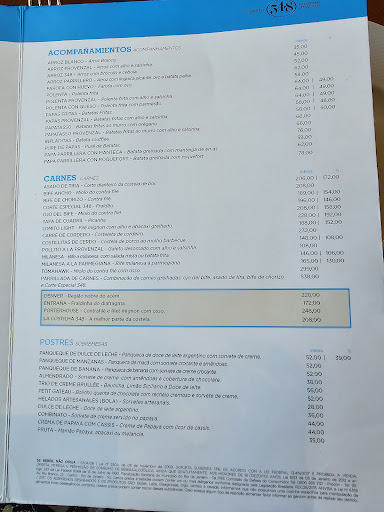 Estuve en 348 el 23 de julio a las 10:40 de la noche (para próximas referencias). Entre dos personas ordenamos el chorizo, las infladitas y el rib-eye al punto. El restaurante es precioso, tiene un ambiente tranquilo que permite tener una cena amena. El servicio (a esa hora) fue magnífico, nos atendieron con rapidez y nos trajeron muy pronto la comida. Los meseros fueron amables y atentos durante todo el tiempo (si bien llegamos tarde al restaurante, creo que el servicio tiene una muy buena actitud y sabe recomendar dentro del menú). El chorizo se puede compartir entre varias personas ya que es grande, sin embargo, es un gran plato que vale la pena entre dos o más, también viene acompañado de un chimichurri espectacular. Las infladitas fueron deliciosas, crocantes, delgadas y grandes, hay que ordenarlas. Por último la carne: llegó al punto en el cual la pedimos, ni más ni menos cocida. Es suficiente para compartir entre dos personas, incluso tres. Esta bien condimentada y a buena temperatura para comer, ideal si no se deja enfriar pero es una buena carne en todo momento. Recomiendo totalmente el restaurante con respecto a mi...