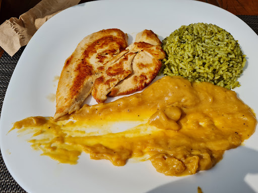 Read morePedi um peito de frango com purê de banana da terra e arroz de brócolis com molho de queijo. Vamos por partes primeiro que eles servem filé de frango não peito, o purê de banana da terra parecia qualquer coisa menos banana e tinha alguma especiaria con gosto de perfume (anis, nós moscada ou algo do tipo) e o arroz de brócolis estava perfeito a única coisa que salvou do prato. O preço não condi com o que foi pedido porque com uma diferença de 5 reais um filé de frango a parmegiana com muito mais preparos queijo presunto e milanesa valeria mais a pena. O prato que pedi foi 35 reais mais 10% de gorjeta. O lugar é muito legal mas as cadeiras não servem para gordos porque tem um suporte lateral que fica machucando o popô. A área interna falta um tratamento acústico porque o zumbido das pessoas falando no salão era ensurdecedor. O lado de fora é...