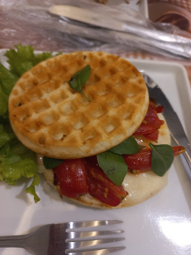 Sanduíche de presunto alemão com ketchup de goiaba nossa eu amei, pensei que seria algo muito doce o ketchup mais realmente tem o sabor de um ketchup normal e o Crispy de cebola estava muito bom também perfeito esse sanduíche .