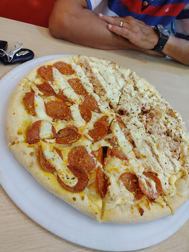 Read moreLugar fica perto do corpo de bombeiros no Jardim carioca. A loja é bem pequena, dá no máximo umas 15 pessoas dentro da loja. Se você for pedir para a viagem é um pouco demorado. Eu quando fui, a loja estava quase vazia e esperei uns 30 minutos por 2 pizzas e um churros. O atendimento é mesmo lento, não gostei. A pizza é extremamente maçuda e vem com pouco recheio. O churros da loja é maravilhoso!!! Eles apenas entregam dentro da ilha. No Galeão, a loja não faz...