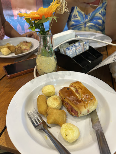 Soube do estabelecimento pelo Instagram. E hj resolvi conhecer com meu esposo e filho de 3 anos . JÁ FUI CATIVADA AO LER O CARDÁPIO COM A SINCERIDADE E HISTÓRIA DO LOCAL. Sou de Cosmos, e o local é de fácil acesso , tem espaço para carro e moto parar e valeu cada centavo ( O preço é surreal de bom pelo que é oferecido na qualidade e atendimento ) e distância percorrida para chegar. Cheguei 9:30hs e já na entrada fomos bem recepcionados e fui alocada no salão e acho q era o dono rs Duas vezes nos perguntou se precisávamos de algo ou se queria alguma fruta de dentro da cozinha p meu filho e meu filho enchendo a boca de bolo kkkkk . Clima agradável, sem barulho excessivo de música ou pessoas. Buffet muito bem serviço com reposição a todo momento. Funcionárias mt solícitas e na correria delas em atender a todos. O QUE MAIS ME CHAMOU ATENÇÃO FOI O ZELO COM A LIMPEZA DO LOCAL. A TODO MOMENTO UM FUNCIONÁRIO PASSAVA UM PANO NO CHÃO MESMO SEM ESTAR SUJO ( PARABÉNS PELO CUIDADO ) . O café da manhã vale por um almoço e tem muita variedade pra ngm colocar defeito. Tudo fresquinho . Não se vê insetos , não se vê sujeira , não se vê bagunça . O espaço é pequeno para a procura, mas tenho certeza que em breve vcs vão crescer mais e mais . Me senti em casa. FOI MINHA PRIMEIRA VEZ E SÓ TENHO A ELOGIAR. Ctz vou indicar e retornar ! Por mim vcs já podem e devem futuramente abrir filiais . Sucesso, e parabens a toda equipe! Minha barriga “ de grávida de gêmeos “ da foto diz tudo. Não tenho estômago pra almoçar e nem lanchar...