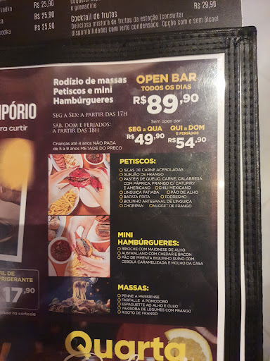 Read moreJá estive presente em duas unidades, a de Nova Iguaçu e a de Botafogo e posso afirmar que se arrependimento matasse, estaria enterrada. O serviço é péssimo em todos os sentidos, em especial na unidade Botafogo. O atendimento parece que é um favor que você está pedindo aos funcionários, não tem sequer educação pra te responder um simples "boa noite" e a demora para servir as mesmas coisas é o que mais impressiona, mesmo com o restaurante com poucas pessoas para atender. Você fica na mesa quase 1 hora esperando trazerem algum petisco que você pediu, isso quando tem o que eles dizem vender no Instagram, pois a maioria dos itens é dado como indisponível. Quando a comida finalmente vem é passada, você nota que nitidamente é comida requentada, velha e feita com produtos de uma qualidade bem duvidosa. A carne dura, o frango com gosto de velho e a batata frita, só por Deus, murcha e enxarcada de óleo. Sério gente, eu nunca vi um lugar que serve tão mal! O refil de refrigerante nunca é reabastecido, você tem que ficar implorando para o garçom mais de 10 vezes para repor e ainda sim, demora. Ou seja, além de com fome você fica com sede. Mas quando os blogueiros que eles contratam vão para filmar, o lugar parece ser mil maravilhas. Puro marketing! Comentei as minhas experiências no Instagram do @riopara2 para alertar as pessoas de que o estabelecimento está longe de oferecer o que aparece no vídeo postado e logo depois de mim, CENTENAS de pessoas comentaram experiências tão ruins quanto as que eu tive e até piores. Não somente nas unidades de Botafogo e de Nova Iguaçu como em todas as unidades do Empório. A empresa ao invés de se posicionar e procurar absover de forma positiva os centenas de comentários de diversas pessoas falando o quão péssimo o restaurante é, tomou a atitude infantil de me bloquear para que meus comentários sejam omitidos. Essa atitude mostra o grande lixo que esse restaurante é, são especialistas em atendimento péssimo, comida ruim e em atrair os desavisados que ainda não conhecem a má fama que eles tem nos quatro cantos do Rio de Janeiro. Sem contar que o valor é bem mais caro do que eles anunciam nas redes sociais... Fujam desse lugar! É aborrecimento na certa e não vale a pena ir nem de graça, já que nem a comida é algo descente...