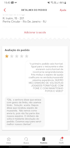primeira vez e última!estou aqui para alertar a quem possa interessar em conhecer a casa.fiz o pedido pelo ifood no dia 4/11.demorou bastante a chegar,mas a demora poderia ter sido compensada por sabor e qualidade.Mas não. ao abrir a embalagem, o arroz a piamontese estava invadindo a divisória das batatas fritas.a batata frita,estava murcha e em pouquíssima quantidade,e o pior foram os espetos:totalmente queimados e borrachudos.liguei para a loja,falei com a Simone,e ela pediu que eu escolhesse outro prato.assim o fiz.espera mais um tanto de tempo,e vem o segundo pedido.o entregador leva de volta o primeiro.abro a embalagem,e me deparo novamente com uma porção de batata,murcha,porém em maior quantidade .e os espetinhos?sangrando,mal passados,borrachudos.o "queijo coalho",tinha cara,gosto,cheiro e textura de mussarela.incinerado também.ligo de novo,falo com Simone,mando fotos e vídeos para provar o que estava falando,e ela disse que eu teria que devolver o segundo pedido também para ter meu dinheiro de volta.e na avaliação do ifood,ela apenas retruca minhas reclamações, alegando não usar limão no arroz a piamontese(estava com gosto sim!)e que não usam mussarela.poxa perai:deixa eu ver se eu posso melhorar a impressão da cliente oferecendo um serviço de boa qualidade pra evitar este transtorno.mas não:fiquei com fome,raiva e sem os 29,00pagos por essa péssima...