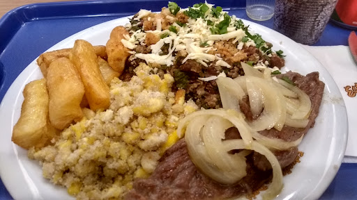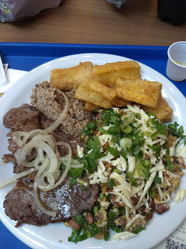 Read moreAtendimento apático, atendentes desmotivados e grosseiros. A comida demorou meia hora para ficar pronta sendo a mesma do cardápio de lojista e não tendo outros clientes na fila. Além disso, comida fraca de tempero e insossa. O baião mais parecia que pegaram as sobrasde feijão (que não era o de corda) e arroz da geladeira e aqueceram na frigideira. Lombinho suíno estava duro e mal passado (carne de porco mal passada, oi?). Enfim, tivemos que pedir pra viagem e ainda assim quiseram nos cobrar pela quentinha de alumínio. Refrigerante para viagem servido num copo de festa descartável e sem tampa....