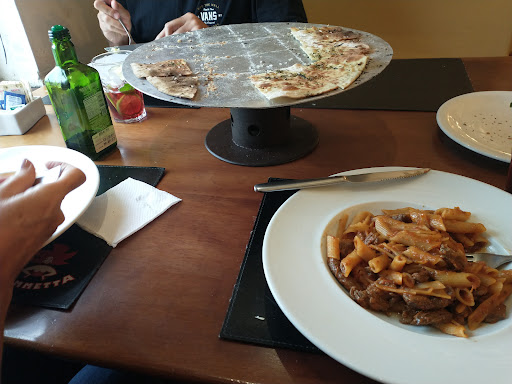 Read moreDesta vez a experiência não foi boa. Pela referência que tínhamos de uma vez que fomos comer uma pizza, esperava bem mais. Fomos almoçar, apesar de ter self service, optamos pelo serviço à la carte. Antes pedimos duas entradas, a pizza branca chegou com bordas queimadas junto com com os principais, os arantinis nem chegaram. Os pratos principais estavam monótonos, pareciam fastfood descongelados. O queijo ralado chegou bem depois de servidos os pratos principais, quando chegou, eu já estava procurando alguém para pedir. A única coisa boa foram as sodas de frutas vermelhas com limão. O serviço estava lento e desatento, você a situação das entradas. Na hora de pagar a conta, a gerente que estava na bancada se servindo (horário de almoço dela) estava finalizando para a equipe que eu estava aguardando para pagar a conta. Aí quando está ruim a gente começa a prestar atenção em tudo: papel no chão, parede suja ou descascando, apresentação ruim da comida do self service.
