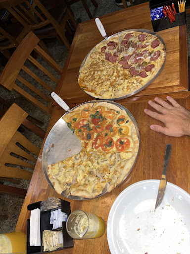 Pedimos una promoción de dos pizzas de 40 cm, realmente grandes. Mucho más de lo que esperábamos. La pizza era excelente se notaba que la masa estaba correctamente leudada, la salsa hecha con tomates frescos, al igual que el resto de los ingredientes. El mesero prestó atención a los detalles que le habíamos pedido, la pizza llegó en las condiciones que esperábamos. Se nota que tienen un buen horno y un muy buen maestro pizzero.