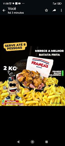 Read morePedi no iFood e a batata veio muito salgada e oleosa, a ponto de jogar fora porque era inviável comer. Reclamei no iFood e me deram apenas um cupom de 5 reais, reclamei no wpp da loja e simplesmente me ignoraram. Muitos problemas fáceis de serem resolvidos que só não resolveram por má vontade, enfim péssima...