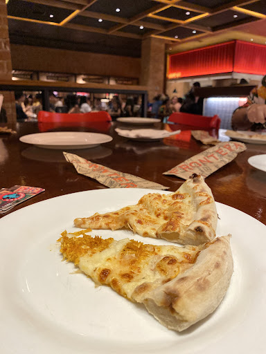 Read more03/02/24 - Restaurante cheio. Tudo começa com uma péssima recepção. A recepcionista perdida e nos levou duas vezes para o lado errado eu e minha família e ainda achando graça disso. Uma vez sentados, até que o ar condicionado estava dando conta, mas simplesmente não chegam as pizzas. Diversas mesas reclamando, mas eu nem me dei o trabalho de reclamar pois estava óbvio que o restaurante não consegue nem produzir e nem obviamente atender quando está cheio. Para piorar, as 21:10 me passa um rapaz do restaurante com um saco de laranja atravessando o salão. As 21:15 um rapaz atravessa o salão com saco de banana. Realmente lamentável. Pior de tudo: levei minha família para conhecer o local e foi esse show de horrores. Mas ainda dava para piorar, os restos de pizza iam acumulando na mesa e ninguém retirava, o refil nunca era reabastecido. A cara de assustado de vários funcionário que obviamente estavam sobrecarregados de funções e não tinham como atender a todos. Mas ainda tinha o desfecho final: levantei para irmos embora obviamente, entreguei o cartão para a minha esposa ir pagar a conta mesmo com o fiasco dessa experiência, resolvi pagar sem reclamar , ao entregar o cartão para minha esposa e ela se dirigir ao caixa , me posicionei com meu filho e sobrinho na porta do restaurante e veio a recepcionista com psiu , dizendo que tinha que pagar antes de sair. Detalhe: eu parado na porta com meu filho e sobrinho esperando a esposa. Informei educadamente a ela que minha esposa estava no caixa. Um verdadeiro show de horrores do início ao fim. Uma pena. Pretendo nunca mais voltar. Mas fica a dica para os proprietários. Acessem as câmeras do dia 03/02/24 e verifiquem tudo que falei. Pois com esse nível de experiência que estão proporcionando, dificilmente farão...