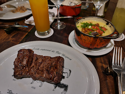 We ordered 'Steak ao sal grosso' (with the addition of 'Polenta') and 'strogonoff de filet mignon'. Plus juices - orange and pineapple with mint. The dishes were served quite quickly, we waited about 25 minutes.