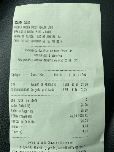 Read moreI'm an Indian and stayed in Rio at a place very close to the Barra beach. Golden Sucos, a restaurant, is a place very close to the hotel I stayed and I chose to have some dinner one night. I'm a vegetarian and moreover I don't understand Portuguese language. I don't find any staff there understanding English. At last I found that in their menu the items used for preparing a dish are also specified in English and that's the only thing helped to place the order. Do not try to make them understand that you are a vegetarian because they don't understand it clearly and may assist you to chose the dishes that has meat. Thanks to Google translate that helped me to place an order with...