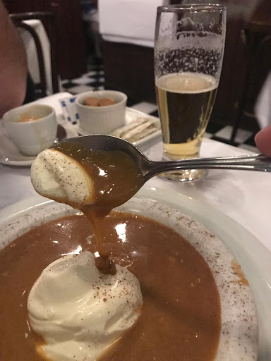 Read moreApesar do bom atendimento, limpeza, tranquilidade e bom sabor, mas achei tudo muito caro. O couvert de entrada tinha pães frescos e gostosos mas foi 40 reais para 2 pessoas e não veio reposição de pastas e não tinha pate de azeitonas, nem brie. Não vale esse preço. O filé mignon com batatas veio apenas 1 pedaço pequeno para cada pessoa e custou 80 reais. A porção era equivalente a 1 prato individual dividido para 2 pessoas. O sabor do molho era bom, mas como estávamos comendo os paes ainda, acabou esfriando no prato. Pelo valor, poderia ser pelo menos 2 pedaços para cada e o molho extra estar em uma vasilha que mantivesse mais tempo o calor. Faltou também algum elemento com cor no prato: tomatinhos, alecrim verde, cumbucas de salada de entrada. Enfim... eu esperava mais de um prato principal da casa.Gastamos 200 reais com couvert de pães, prato principal, 2 drinks e 1 chopp. Na França teriam servido salada, caldo e sobremesa em valor equivalente. O Brasil está caro demais com serviços...