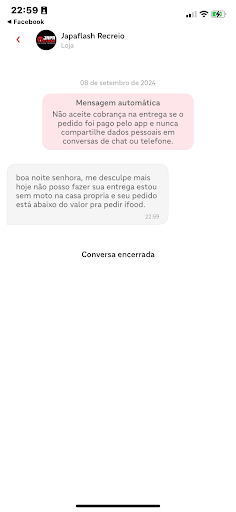 É incrível a forma que o estabelecimento trato um cliente de primeira vez . Eles colocam uma promoção no IFood e simplesmente eles cancelam o pedido pq o preço está baixo demais pra eles . Então não coloca promoção no app. Já que vcs não são capazes de atender o pedido do cliente por mais barato que seja . Fica aqui a minha indignação e lamento pq acabaram de perder um cliente que poderia comprar muito mais , até pq a minha filha ama japa . Mas pelo que estou vendo os comentários, isso...