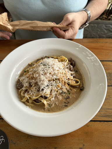 We ordered Fettucine pasta with filet mignon. The server didn’t ask how we wanted the steak cooked, which should always be asked. As he was leaving the table, I got him back, and ordered medium rare, which they call “mal passado” here in brazil. It wasn’t a filet, but two pancake thin pieces of steak cooked well done. I’d call it multiple thin skirt steaks, definitely not a filet.