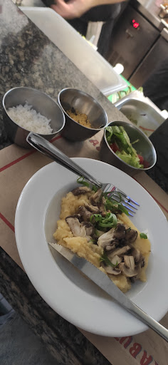 Read morePéssima experiência visitando o local. Pedi i prato vegetariano o qual perguntei o preço ao garçom e fui informado que seria R$ 40,00 (friso que esse valor já é elevado para a região mas aceitei em função a expectativa de ser algo diferenciado), chegou um prato de polenta acompanhado de guarnições de arroz, salada e farofa e a quantidade dessas guarnições era muito pouca (repare a quantidade de arroz na foto). Para completar a polenta era sem gosto, uma comida sem graça. Ao comentar com o garçom sobre a quantidade foi né dito que a guarnição seria pouca pois a filosofia da casa seria de entrar desperdícios e eu poderia pedir mais, algo que não me convenceu. Para coroar a experiência ruim, na hora de pagar, o atendente cobrou R$ 46 pelo prato e mostrou surpresa quando eu disse que foi informado 40. Friso que há outros diversos cometários sobre conta cobrada a maior o que me faz pensar que é uma prática reiterada do estabelecimento....