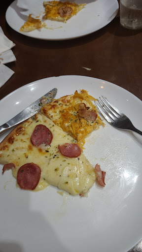 Read moreEu e minha esposa não fomos bem atendidos. Desde o início do rodízio deixamos claro que não comíamos nada de porco mas o que mais nós ofereciam era justamente comida com derivados de porco. E outra coisa, chegamos a ficar vinte minutos sem vir um garçom sequer na nossa mesa para nos servir. Gastei 100 reais pra comer apenas 4 fatias de pizza e minha esposa 3 e isso pagando por um rodízio de 43 reais por pessoa. Teria sido melhor se pedisse uma pizza grande, teria comido mais e pagado menos. Não volto nunca mais neste lugar pois chega uma hora que param de servir. Percebi nitidamente a diferença de atendimento quando um casal que tinha acabado de chegar sentou do nosso lado e logo foram servidos mas nós que já estávamos ali a algum tempo o garçom sequer olhou pra nossa mesa. Reclamei na saída ao pagar a conta e a resposta foi: você comeu pouco porque não come qualquer coisa. Mas tendo em vista que eu não como qualquer coisa, poderiam ter me servido bem, naquilo que eu como. Me senti como se este lugar não fizesse questão da minha presença. Eu e minha esposa estamos muito chateados. Não...