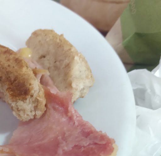 A propaganda enganosa da "imagem" do misto que eram duas fatias de queijo e duas de presunto se resumiu ao pão seco que nos entregaram ...