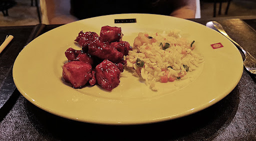 The Peking Chicken, which when we have tasted anywhere else but mainly in the UK normally comes with a peanut fruity sweet sauce. In this version, there were cashew nuts scattered alongside the diced chicken. The sauce again lacked substance and flavour.