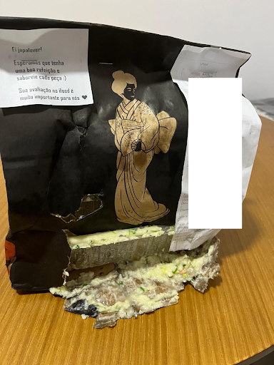 Na minha embalagem, tinha alface podre, parecia pedaços comidos, com um pedaço nojento, e a pessoa consegue te explicar que é por causa da entrega, que demora 15 minutos (....). Eu tinha que jogar sushi fora por causa do cheiro que nao confiei, podia ver que os sushis, rolls etc foram feitas jà um tempo, todo colado, nada fresco, uma pena. Nem vou falar do arroz.