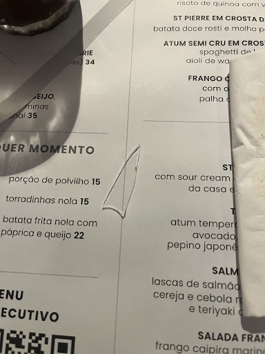 The location of the restaurant is quiet in a fancy neighborhood in Rio, Leblon. Covid measures applied in the entrance. We’ve asked 2 starters: the Harumaki lamb and the tuna crispy. The harumaki was deep fried and the tuna with cream cheese in between the cracker and the dish. The main course that I have asked was the St. Peter fish with sweet potato rosty - all with a taste of deep fried food, in which I dislike (seems that in Brasil grilled is fried with butter on the hot plate). I’ve asked for another dish which was the home made pasta with lamb ragu. More cream cheese on it. I found the restaurant very grecy and all the food has cream cheese, which actually takes the flavor from the food itself, with all tasting the same thing. Salty price for a not spectacular food. I don’t recommend...