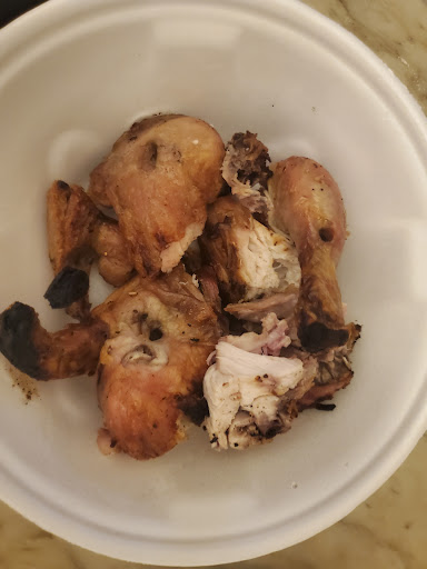 A restaurant with 1970s décor that offers counter service for roast chicken, fries & farofa.