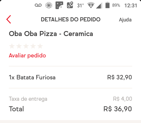Péssimo, fiz um pedido para entrega, me mandaram errado, ou seja paguei caro por uma coisa que na consumi, reclamei e nada foi feito. ligue diversas vezes e não atenderam. segue a baixo as fotos. pedi uma "batata furiosa" paguei por ela e me mandaram "batata simples"