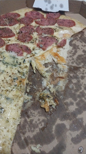 Read morePedi uma pizza meia calabresa e meia 4 queijos, tamanho: 40cm - serve muito bem 2 pessoas ou 3 que não comam muito. A pizza estava ótima de sabor e me surpreendeu muito por ser um dos últimos restaurantes que a espessura da massa ainda não é da finura de uma folha de papel.