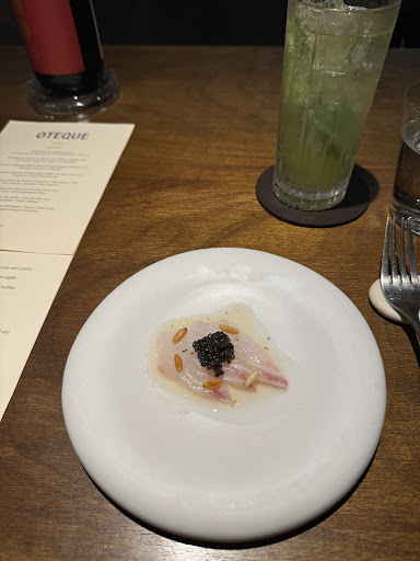 Service: When we first arrived, the service was excellent. The servers were attentive, observed our cutlery choices for each course and quickly replaced each one. That said, we were two out of four total patrons in the restaurant at that time, since the establishment had just opened for the evening. However, the service quickly devolved once the restaurant began to fill up. For example, the communication surrounding the additional, supposedly "celebratory" dessert course was lacking. The plate was dismissively slid onto our table without any explanation or preparation (the staff failed to complete the presentation by pouring the accompanying sauce), which was unexpected for a restaurant of OTEQUE's caliber.
