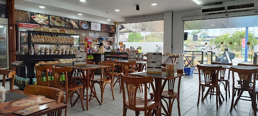 Minha primeira visita e infelizmente a última. Demora no atendimento, demora no preparo de um café simples (pedi pão de queijo recheado com requeijão, expresso, pão com linguiça, café com leite e suco de laranja). Esperamos mais de 20 minutos, muitos atendentes perdidos, pra lá e pra cá, pedidos no balcão aguardando serem retirados. Ao sinalizarmos ao atendente que nosso pedido estava demorando, ele falou que era pra olhar ao redor que estavam cheios e que ainda tinha o delivery. Sendo que quando chegamos e fizemos o pedido, estava vazio. Se o estabelecimento não tem estrutura para atender o salão e mais o delivery, que expandam a equipe ou contrate mais pessoal é treine a equipe.
