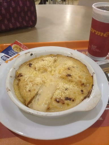 Read moreUma lástima, dinheiro jogado fora, comida péssima, pedimos arroz a piomentese, batata frita e picadinho de carne, e um suco, pagamos $ 82,40. Ao pegar nossa refeição veio arroz comum, a atendente levou a refeição de volta e nos trouxe um nojo de arroz, sem gosto nenhum, parece que jogaram um creme que nem misturado direito foi, sem queijo, completamente sem sabor, batata frita com restos de queimados, pedaços mínimos de carne duríssima emergindo num caldo igualmente péssimo. Que situação desagradável, NUNCA mais compro nada nessa loja e nem indico a familiares e amigos. Vcs tem que rever a qualidade de suas refeições e de seus colaboradores. Dei uma estrela pq não podia ficar sem...