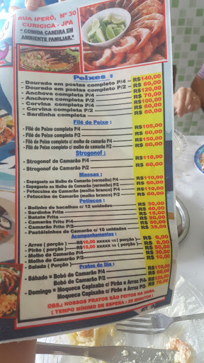 O melhor do restaurante é o pastel de camarão,saboroso e com camarão apesar de ser pequeno. Simpatia do Senhor calvo que fica a frente da casa ZERO. Se você quiser provar o pastel, tem que ligar para saber se tem(Não fazem todo dia). O bobó de camarão é saboroso, mas com pouquíssimo camarão. Dá a conta para duas pessoas. Porção de sardinha mau servida, com sardinhas muito pequenas. Pedi tambem Dourado Frito para 2 acompanha pirão, arroz e salada. Pedi à parte molho de camarão. O peixe veio 4 pedaços, queimados e totalmente sem sabor. O molho de camarão só tinha o nome, ralo e com muito pouco camarão e sem sabor algum. Atendimento razoável, bebidas geladas. Banheiro razoável. Poucas mesas, local sem ventilador e em dias de calor tem que ir preparado para sentir calor, mas MUITO CALOR MESMO. Muito quente o local, não tem Ar e nem Ventilador . Dificil Acesso para pessoas com dificuldades de locomoção. Entrada com degraus altos e sem barras de apoio, muito perigoso para pessoas de idade e/ou com dificuldades de locomoção ou gestantes. Sugiram ao proprietário colocar barras de apoio. Difícil de estacionar não tem local . Não cobra 10%. E os pratos levam em média 25 min. para ficarem prontos. Não recomendo, pela falta de não saber como atender ao público, o senhor que fica sempre zanzando, não tem tino comercial algum, deveria colocar alguém mais simpático à frente do negócio. Temos no Rio locais muito melhores e com ar condicionado....