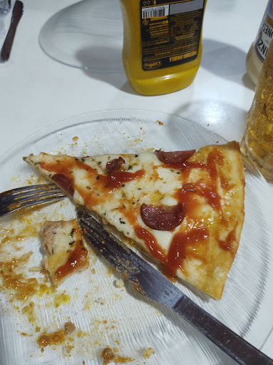 A Pizza tem massa de pão, demora a sair , os profissionais ficam no Cel , conversando e atoa. Não pode deixar pizza no prato se vc não gostar, pq paga 5,00 a mais. Os brinquedos são velhos e tinha uma poça de água na área kids. A área kids NÃO É GRATUITA, paga 29,00 além do rodízio. O rodízio paga na entrada, eu paguei no cartão por isso tive que permanecer. Talvez, isso seja estratégia do dono, para gente não querer ir embora apos ver o mal serviço. Sinceramente não vale a pena: 54,00 rodízio no cartão / 49,99 no dinheiro, Pix 29 pra criança brincar 5,00 a mais se colocarem a pizza pra vc e vc não gostar. Total: Pagar mais de 80,00 em um lugar encardido, pizza Massa de pão e Brinquedo velho. Por esse preço vc vai no rodízio Severina, no rodízio fantástico e na pizzaria tamojunto em Nilópolis.