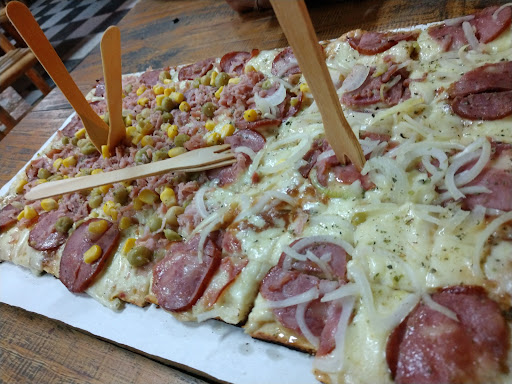 Muito boa a localização, de frente pra praça, bem movimentado. Ótimo atendimento, pedi lugar pra 15 pessoas com a casa cheia e rapidamente resolveram essa questão. A ideia é muito boa de ter uma pizza quadrada, ótimo pra dividir, ainda mais que ela vem a francesa. Mas não gostei da pizza, achei seca e sem gosto. Pedi frango com catupiry, calabresa e portuguesa. Frango com catupiry, o frango estava branco, sem tempero nenhum. Calabresa, sem molho e sem gosto, seca. Portuguesa, apesar de seca a pizza, tinha bastante recheio, porém muito pimentão. Se...