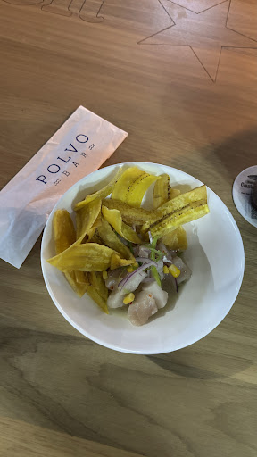 Very tasty! We tried the chiccaron de polvo with come with delicious aipim, avocado, and slices of red onion. Really fresh and the polvo was fried perfectly. Only thing I'd change is add more polvo! The ceviche was also very fresh, with corn and onions in the mix, and fried banana pieces for crunch. We weren't that pleased with the cocktails, so I suggest sticking to beers if you visit. The Praia (Beach) cocktail says on the menu that it will be salty, but it's like an electrolyte-packed cocktail when you drink it. Definitely too salty for some people. The citrus caipirinha was very citrus-y, good for getting your daily dose of Vitamin C, but could be more balanced as a cocktail. Finally the location is nice, with seating indoor and outside on the street. No AC and no fans, but in the evening even during summer it wasn't too hot. The space is open and well decorated to match the undersea vibe. The servers were pretty attentive. I do suggest switching your digital menu to Portuguese when you order because the translations can be confusing to the servers (or Polvo Bar - number your menu so dish 14 is the same in any language). Overall, I'll be back next time I'm in a fresh seafood...