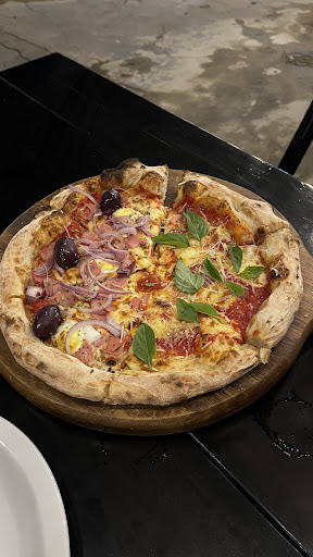 Read moreÉ uma pizzaria de garagem e isso nos dá uma feliz sensação de que estamos na casa de amigos. A decoração com as luzes é muito agradável. A atendente é simpática e solícita, não mede esforços para que nos sintamos bem atendidos. Sobre a pizza, uma palavra: impecável! Desde a massa, o recheio até o molho. Tudo muito saboroso e bem feito. Comi os sabores Portal 42 e outra que levava carne seca com requeijão de corte (não sei o nome). Simplesmente amei. Comi também um doce de banana (não sei o nome) que estava divino. Como melhoria, senti falta de um cardápio, eles não têm. A gente fica sem saber nomes ou valores ou, até mesmo, todas as opções possíveis. É um detalhe, mas senti falta. Fica como sugestão de melhoria. Super...