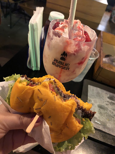 Read moreJantar hamburguer pela terceira vez nesta semana não era meu plano, mas quando caminhei em frente ao Public Burger fiquei cautivado pela proposta, ainda não convencido fui ate o final de la rua em procura de um menu diferente, nao achei nada que me cautivara mais. Ao entrar você não tem muitas sorpresas ja que da para ver tudo desde a calzada o frente e aberto, sinalizações claras " AQUI SE PEDE" "AQUI SE PEGA" dispensa dúvidas do funcionamento do local. Asim q me coloco em fila para pedir(so una pessoa em frente) e ai fui abordado por una mulher muito simpática q me explica o funcionamento do pedido e me recomenda um hambúrguer que esta sendo promocionado (220 g beef com um aro de cebola envolvido com bacon) a melhor parte.... Raclett de queijo por sima. Sem pensar mas eu pedi a sugestão da garota. Sentado na mesa esperei meu hambúrguer que demorou en chegar mas demorou o tempo demora cocinar um medalhão de carne ao ponto. Presentado em uma bandeja de madeira com uma porção justa de batas rústicas ja o visual era apetitoso imagina quando chegou o queijo por sima um show de sentidos, deixando cair no centro da cebola e espalhando em sima das batas. Fique ate con vergonha ja q as mesas em volta ficaram olhando o especulo sem contar que quando o prato ficou pronto eu nem sabia por onde encarar ele. Confeso que por primeira vez e em contra a todos meus principios teve q comer um hambúrguer com faca e garfo. Posso falar q e o melhor hambúrguer q tenho comido no rio ate a data no so pelo diferencial do raclet e sim também pelo preparo e a suculencia da carne. O ponto da carne era ótimo, a maciez também como tempero y quantidade de gordura. A única critica o pao da base era fininho de mais o nao me permitiu levantar o hambúrguer e comerlo com as mãos como deve ser. Tudo resto merecem as 5...