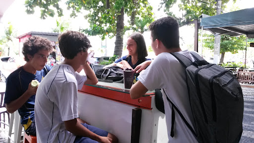 PURO SUCO é uma lanchonete onde o Italiano e o Açaí são os mais pedidos. Está com uma variedade grande de produtos, inclusive Vegano. Agrada a todas as idades, o preço é moderado. É o point dos jovens. Loja em frente à praia de São Francisco, tem uma decoração muito interessante e que atrai exatamente este público jovem. O piso da loja é uma pista de skate, com os cantos arredondados. O balcão de apoio para lanchar é feito com 2 skates. Tem um detalhe no alto de uma parede, que lembra uma onda e é revestida de pastilha azul claro, além de um poster de surf. Na calçada, outra sacada bacana, uma grande mesa feita com uma canoa havaiana. Vale a pena ir para conferir este ambiente tão bem montado, pensado e principalmente provar o cardápio...