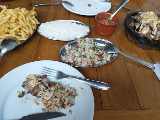 Read moreFui com minha família ao Quintal do Stuart para almoçarmos. O restaurante estava bem cheio o que fez com que tivéssemos que esperar na fila do lado de fora durante algum tempo. O esquema da fila é meio confuso (os nomes são chamados aos berros por um funcionário) e não é fácil fazer aquele tipo de pedido de espera, como um Chopp ou algo para beliscar e enganar a fome. Depois de um considerável tempo de espera entramos no, literalmente, Quintal. Um lugar bem amplo, com bastantes mesas e uma churrasqueira ao fundo onde acontece o preparo das especialidades da casa. O serviço, dado o número de clientes, me pareceu bem perdido e confuso. O ambiente, mesmo que amplo, é cercado por paredes, o que faz com que lá dentro fique bem barulhento, além da música que rola ao fundo. Fica um tanto caótico para quem quer sentar e conversar, por exemplo. Pedimos alguns pratos com bom preço, bem servidos mas que não me chamaram em nada a atenção no sabor. No final acabaram esquecendo um de nossos pedidos o que não ajudou muito na nossa experiência final. Em resumo acho que daria mais uma chance para o Quintal do Stuart. Talvez em um dia mais vazio as coisas estejam mais em ordem e agradáveis pois o estabelecimento tem...