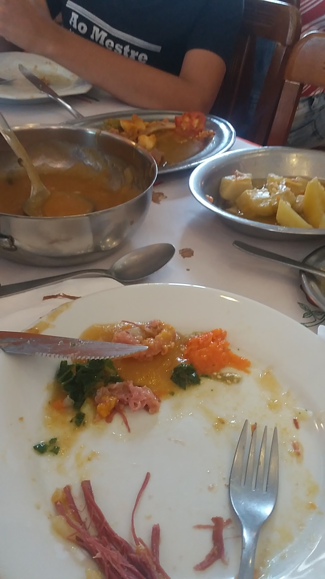 Read moreEu e meu marido fomos ao restaurante atrás do "carro chefe" e fomos orientados pelo simpático garçom de pedirmos para 1 pessoa que daria muito bem para nós dois. Realmente era o suficiente. Somente a porção de arroz e de dois legumes separados dos demais (acredito ser maxixe e jiló) vieram pouco, mas o restante dava pra nós dois. Ainda questionei ao garçom quando trouxe o pedido: "Esse é o de 1 pessoa que serve 2 ?" Ele respondeu: "Esse mesmo." Porém, ao receber a conta, reparamos que estavam cobrando o valor do prato para 2 que servem até 4 pessoas. Ficamos surpresos e questionamos. O mesmo garçom afirmou que o nosso foi o "completo", ou seja, o que serve até 4 pessoas... INDIGNAÇÃO TOTAL....não pela diferença de 40 reais, mas pela má fé... Será que a corjeta de 10% do valor de uma conta de maior valor vale mais do que a satisfação e o retorno do cliente?? Apesar de termos adorado a comida, pagamos a conta a mais e não voltaremos. Fiquem de olho nessa "esperteza" aos que arriscarão comer nesse...