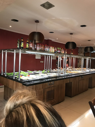 Na ilha de comidas japonesas, notamos que as comidas não estavam devidamente ambientadas, e o atendimento deixou a desejar. Ficamos surpresos ao descobrir que não era permitido misturar comidas japonesas com brasileiras na hora da pesagem, e uma funcionária teve que separar o que era de cada tipo, o que causou confusão.