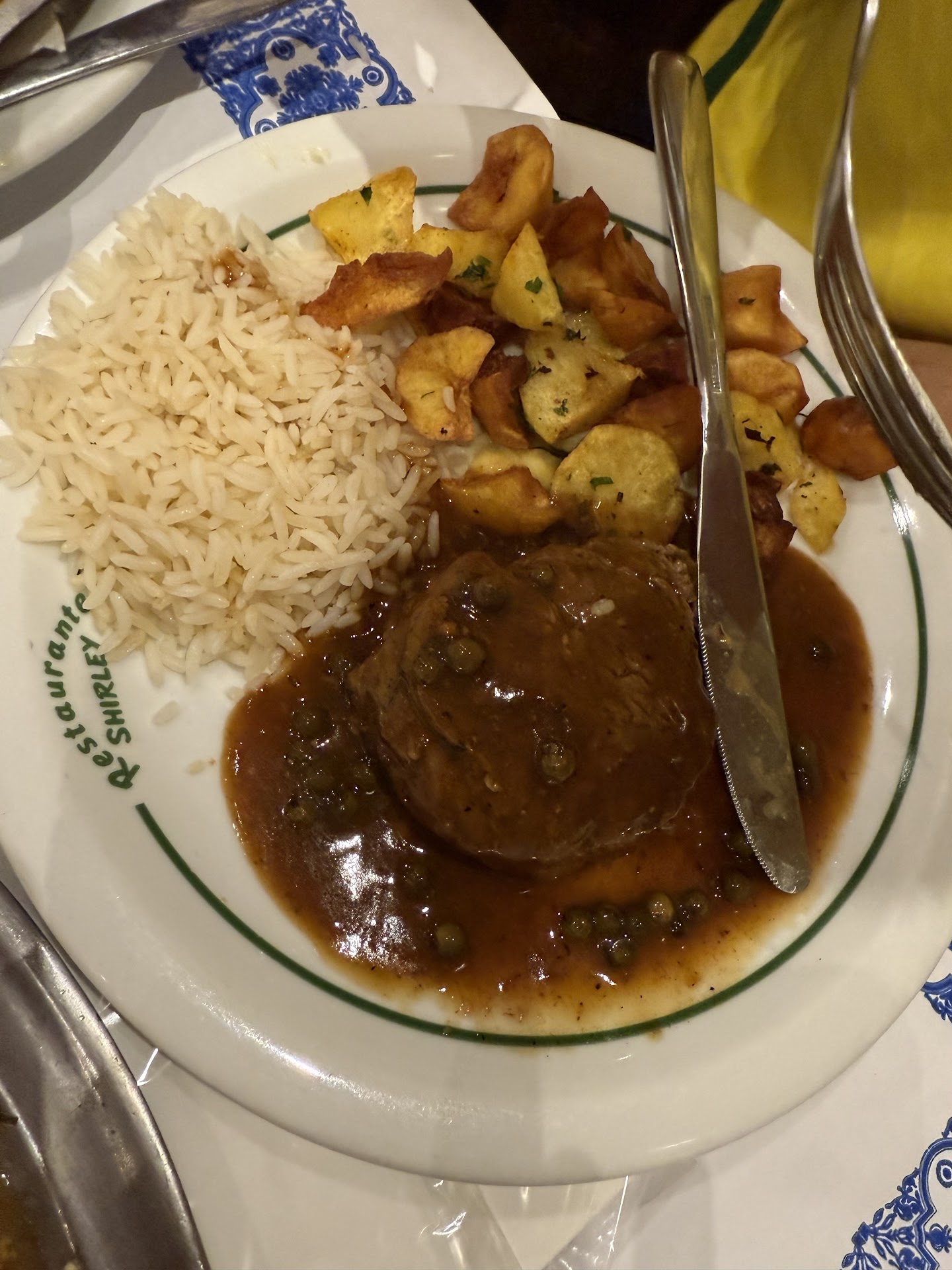Há 2 ou 3 anos não ia ao Shirley. Já fui habitué do local. Antes de comentar afirmo que o restaurante é especializado em falsa comida espanhola. Poucos pratos respeitam as receitas originais. Outras são declaradamente não espanholas. Então nada é bom? Não é bem assim. Os frutos do mar estão sempre frescos. Muito frescos. Os camarões VG são tentadores e campeões de pedidos da casa. A tal ponto que ela se dá ao luxo de relaxar em vários pontos. Uma ida aos banheiros, nunca devidamente limpos, revela uma cozinha minúscula e com uma higiene, digamos, que deixa a desejar. Como muitas casas da "velha guarda" carioca. Vamos à comida. O couvert seria desinteressante (azeitonas, manteiga, pães de qualidade média, mexilhões à vinagrete) não fosse as deliciosas sardinhas à escabeche feitas na casa. Impossivel não passar o pão no saboroso molho. A sardinha pode ser pedida à parte, dispensando o couvert. No capítulo dos pratos principais a escolha é grande. Carnes e frangos não merecem atenção alguma. As receitas são banais e nada tem de espanholas. A escolha recai nos frutos do mar. Recomendo as almejas a la marinera (aqui executadas com vôngoles, na ausencia das verdadeiras almejas), a zarzuela (frutos do mar ensopados com molho à base de vinho branco açafrâo cebolas tomates páprica etc), os calamares rellenos en su tinta (lulas recheadas ensopadas em sua própria tinta), pulpo a la feira (polvo cozido com batatas temperado com sal grosso e páprica, servido tanto como entrada ou como prato principal), as cazuelas (recipientes redondos de barro, podem ser de camarões, polvo, lagosta ou badejo) e o linguado a la molinera (o mesmo que a belle meunière). Os campeões de venda, os camarões gigantes, tem varios preparos. Os chamados gambas al ajillo vem com alho picado torrado e arroz a grega. A verdadeira receita espanhola os trazem mergulhados em azeite quase fervente com alho (jamais torrado), pimenta vermelha e páprica. As outras apresentações são interessantes e gostosas. A lagosta ao thermidor, receita francesa do século 19, já foi bem executada no Shirley. Hoje está mais para comida de carregação. E as paellas, estarão perguntando os leitores? Sinceramente não recomendo, pois deixam a desejar. Talvez quem não esteja familiarizado com a comida espanhola goste. Eu recomendaria a feita com arroz negro de tinta de lula. Sobremesas sem a menor importancia. nada se destaca. E que comi? Uma cazuela de camarões. Feita no vinho branco, cebolas e açafrão. Único prato de camarão que, devido ao modo de preparo, ensopado, não permite a manutenção do tamanho original do crustáceo. Ele encolhe bastante. O caldo é uma delicia, mas desta vez estava salgado além do ponto correto. Outra observação é que depois de décadas, a direção do restaurante ainda não se dignou a preparar as cazuelas com aspargos frescos e petit-pois congelados ou frescos. Pelo preço cobrado, que não é barato, é inadmissivel ainda usarem ervilhas em lata e aspargos em conserva. Por tudo que foi relatado aqui, 3 estrelas. Mas se os proprietários do local quisessem, chegariam sem esforços maiores a 4 estrelas. Talvez os clientes devessem ser mais...