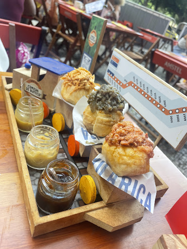 Logo ao chegar, você vai sentir o ambiente simples e simpático: há mesinhas internas com ar-condicionado e outras na calçada, perfeitas para quem gosta de comer ao ar livre. O restaurante também funciona como choperia, o que combina muito com o clima descontraído da Glória.