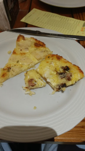 Porém, a alimentação deixou muito a desejar. O macarrão à carbonara estava sem sabor nenhum, e o bacalhau sem sal, o que foi uma grande tristeza para mim. A maior decepção foi a pizza portuguesa, que, apesar de cheia de ingredientes, não tinha sabor. Não fui o único a notar isso; outras pessoas comentaram antes mesmo de eu falar algo. A pizza tinha um sabor aguado e o macarrão à carbonara também estava sem sabor. Naquele dia, comi seis pedacinhos de pizza, e digo "pedacinhos" porque as pizzas são pequenas mesmo. Como o intuito não é ser um rodízio de pizza e sim de massa, seis pedacinhos são poucos, levando em consideração que, em um rodízio normal, como de oito para cima. Infelizmente, estava tão enjoativa que não consegui comer mais.