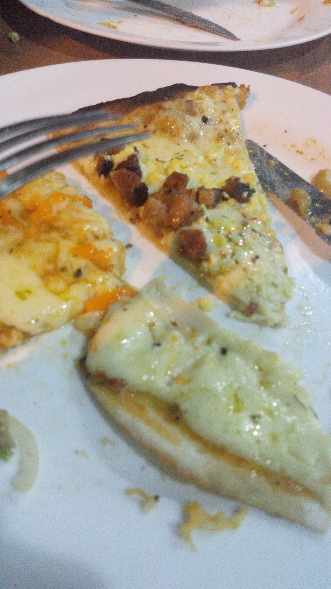 Massa da pizza tão seca e tão fina que não dá p cortar pq gruda no prato; Calabresa jogada e mal cortada; Quase sem recheio..era mais massa e sinceramente quase não comi. Esperei um intervalo mínimo de 20 min entre uma pizza e outra e quando vinha uma pizza o sabor era ridículo, como o de peito de peru..só que eram fatias mal cortadas de peito de peru.. nunca vi esse sabor em rodízio, faltava só ser servido pizza de fatia de mortadela.