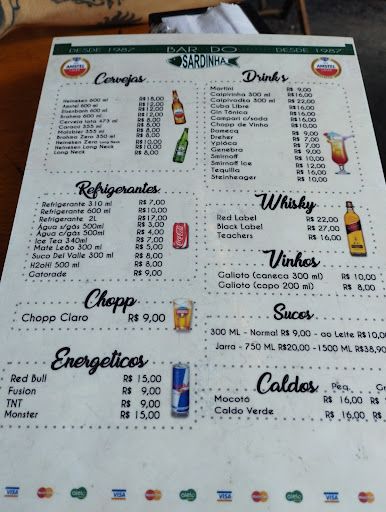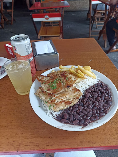 As mesas ficam numa larga calçada coberta por uma eficiente cobertura. A comida é boa, bem servida e saborosa, com ênfase no contra-filé, que arrisco dizer q é o melhor da região. A sardinha obviamente tbm é ótima. A cerveja é gelada e o atendimento eficiente. A comida é melhor que a do Olimpíadas do chopp, que fica em frente. E não tem música alta como o reza forte, que fica na outra extremidade da rua, o que permite vc conversar com as pessoas da sua mesa sem gritar. Um bom lugar pra almoçar ou jantar e melhor opção da região pra bater um papo com os amigos e...