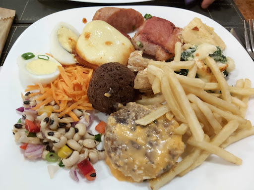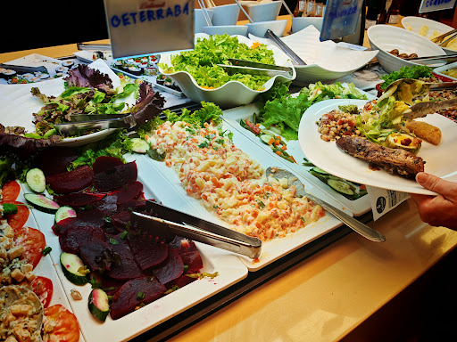 A large weigh & pay restaurant serving Brazilian dishes, sushi & grilled meats.