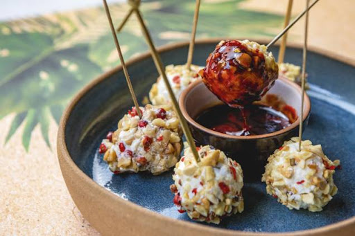 Foto 1: palitos de queijo de cabra na entrada de Fred Monnier