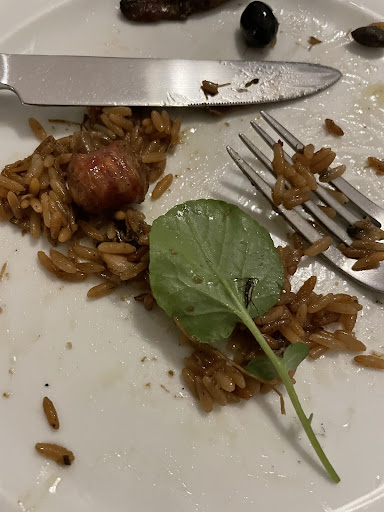 The service throughout the meal was also poor. Despite a long and varied wine list, the waiter had absolutely no knowledge of the wines offered. All he could tell us was that most diners order Brazilian or Portuguese wine and that we should choose one of those too. Throughout the meal, the waiter was inattentive. He sometimes did not refill our glasses as needed and other times served when the glass was already relatively full. Our plates were not changed following our appetizers, which left them dirty with the black, inedible charcoal of the mushrooms (more on this below). As if it was not enough, our entrées arrived at different times and the tiny portion of filet mignon was left in the middle of the small table with just one meat knife as if there was any possibility of sharing it.
